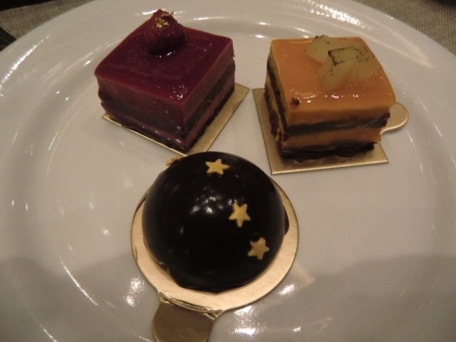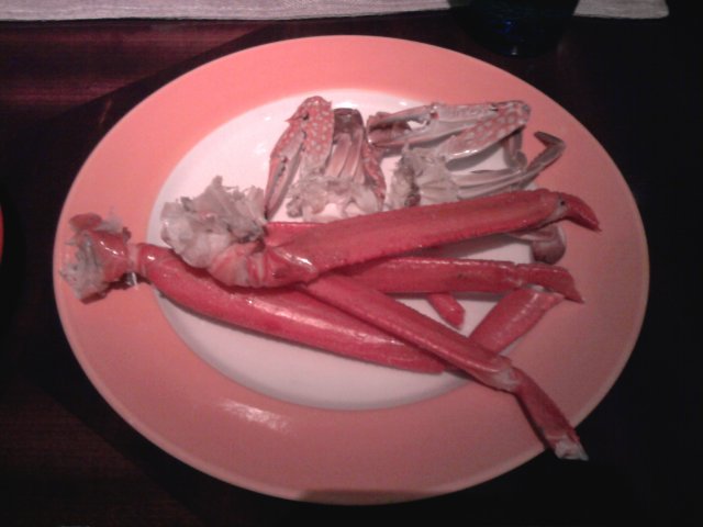 长脚蟹、三文鱼生、桑葚慕斯蛋糕、榴莲布丁