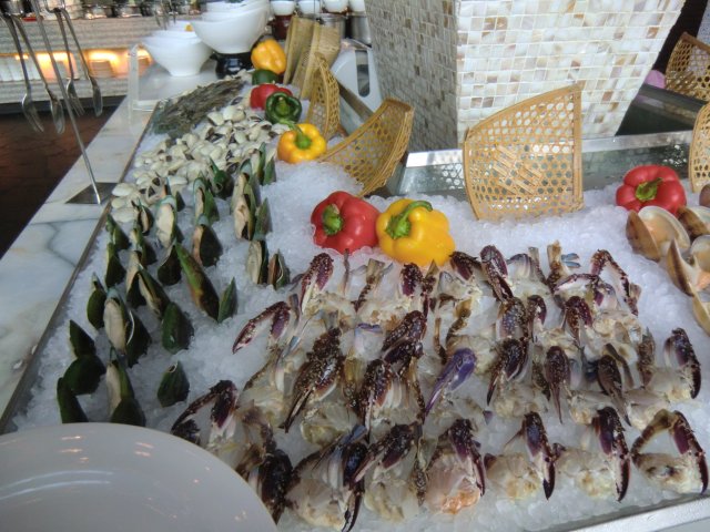 五星级的自助餐本来价格就不便宜,但胜在出品有保证,加上环境好,三五知己聚餐还是不错的选择。服务员态度很亲切,有礼貌。三文鱼刺身够新鲜,虽然一次拿一小碟,但供应还算充足,还切得很厚呢。冻吃的扇贝让人好满意,甜品种类好多,其中绿茶蛋糕味道好好吃,还有巧克力蛋糕味道很浓郁。查看更多