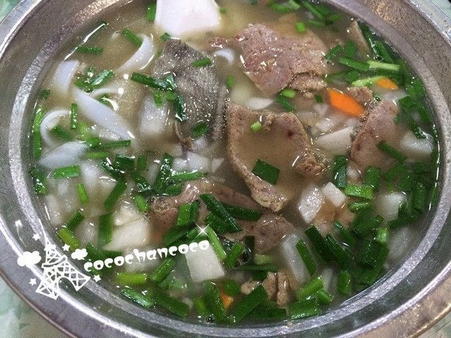 牛三星和羊杂汤有浓浓的药材味,三星爽滑唔老,配上新鲜的韭菜饮翻啖汤,超正.