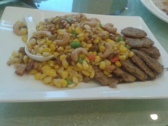 某位长辈生日,吃了长寿面,寓意健康长寿的意思,面是用蚝油捞的,有韭王很香。还有那个松子丁也很有分量,松子很多很香,还有腰果,玉米粒,红萝卜粒,小朋友最爱吃,很香口,颜色很缤纷美丽。旁边还很有特色加几块鲮鱼饼,鲮鱼肉很弹牙,稍微咸了些。不过貌似这样只有几个一大桌不够分耶。查看更多