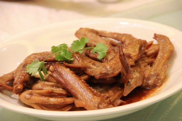 又来这边吃饭。今天有吃这个特价的卤水掌翼,20来块的样子,用手抓着吃很过瘾。可是我们有时会嫌麻烦,在酒家只是吃一两只,然后其他打包拿回家,加土豆再炆软一点就更加入味。推荐这个 陈皮骨,我的堂弟最爱。用纸包着陈皮骨,里面还有一丝丝陈皮,不过今天吃稍微肥了一些,都看到肥膏油腻啊。查看更多