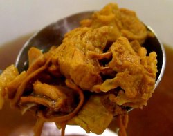 ,不过好处就是一桌可以送一碟虾,不错的。点了几个菜,其中包括特价19.8元的虫草花燉老鸡,量足,而且汤因为虫草而清香甜,鸡味很浓郁的,超值啊。还有渴望已久的招牌虾球,很香,也很弹牙,有嚼劲,可是不足的是虾球的外层不够脆,可能是炸好后放了些许的时间才上桌。