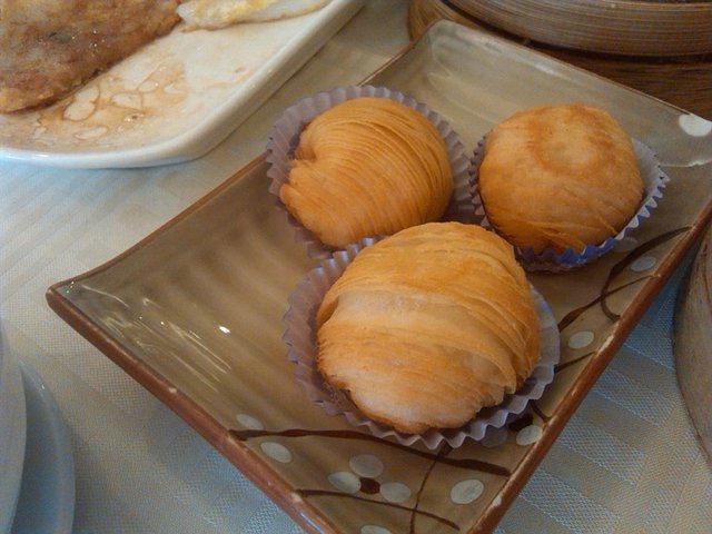 我们也很少理,喜欢吃什么就什么,2点半前已经消灭了几碟东西,2点半之后我们的确也去排了一些特价电信的回来,那条队伍啊真是厉害厉害~~其实过了半个小时以后基本上已经不用排队,东西也还有,也不知道大家争什么~~中国人就是喜欢凑热闹。结果最后我们3人点了14碟东西~~我都觉得有点多,隔壁搭台的阿姨也是点了一堆东西,问题是人家打包了一半走,不过这个阿姨其实是来打包的吧????味道的话,推车保持正价的那些味道自然很好吃,特价的那些马马虎虎也还是可以的~~凤爪:每次都有人会吃的东西,这里做得不太辣,我吃了好多花生,骨头没啃多少。干蒸:好大粒好爽,样子也漂亮。排骨:这里的排骨也是大大的,分量不少,芋头好好吃啊,排骨好肉,可能是保持正价的关系,水准也有,我们要了两碟,都吃光光,这个推荐。卤猪肠:这个是出乎意料的,做得入味,不过垫底的酸菜好咸。我们要了第二碟可是第二碟的猪肠中间有肥糕,虽然分量比第一份要多,可是没那么好吃了,这个可以推荐一下。号称可以吃得下8碗饭的山地妈要了一笼叉烧包,我问了隔壁朋友要不要吃他摇头,之后我拍拍山地妈的肩膀说:我也不吃,这三个包你就自己啃了它吧。山地妈大惊,差点要放下包的阿姨拿走它,不过也还是啃下了那三个包。其实看样子这三个包还是不错的,起码样子做得不错。可是看着他啃完,我也觉得好饱。山地妈要吃春卷,我去拿的时候看到旁边另外一种卷,所以也拿了一碟回来,皮的话,还是春卷的比较脆,可是我喜欢椰子卷多点。春卷的馅料不似平常一些芽菜什么的,还有点滑啊粉浆开过吧,口感不够脆。结果看着山地妈又啃下了两条春卷和一椰子卷,我们都很习以为常,可是他竟然这样就饱了了,之后都不肯吃什么~~我们其他两人彻底鄙视了他一下……这是有损他号称八碗饭的称号的。牛羊杂:这里的招牌,不过没机会尝到,山地妈妈自己拿了一碗竟然就旋风地吃完也不让我和号号试一下。炒粉:那些人都特地排队拿的,其实很小碟,牛肉才只有两块而已。白云凤爪:样子真丑陋,没有一只是好看的,看别人桌子都是拿的卤凤爪,只有我们号号拿了这些丑陋的白云凤爪,之后我啃了一只以作鼓励,其他三只都要他自己啃回去……橙味奶挞:蛋挞没有了,橙味的皮好粉好硬,不好吃,中间的确有奶味不过不似牛奶……没事就别要了。最后剩下我还有空肚子的那个要了一碗鱼皮饺,看到阿姨勺了好多菇进去,我就说要鱼皮饺啊,不过阿姨依然自我,最后在满盘的鱼皮饺中终于勺了只进去,整碗就两只~~我说对顾客很吝啬似乎是酒楼点心阿姨的通病~~山地妈妈说不是菇类比较贵??这里的下午茶只到4点,3点多就过来要你埋单~~囧囧最后剩下一点猪肠和一个奶挞,最吃得的山地妈妈死都不肯吃,比起当初他吃饭的气概,我们只能说他真是老了……那三个包和三条春卷就征服了他……查看更多