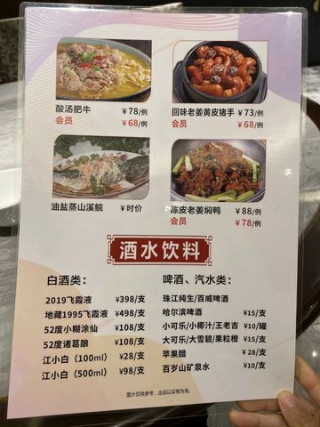 某次公司部门聚餐到这里吃饭,这里的装修是不错,晚饭时间不算太多人,所以也不是很吵。这里的价格相对的高一点,随便一个小炒都要50以上的。点了酸菜鱼,酸甜排骨,鳄鱼肉,牛仔肉,烧鹅等等,不过感觉分量一般,最后还要加了三个菜才够吃。鳄鱼肉,感觉一般般吧,有点蒸老了的口感,而且也偏咸了一点。牛仔肉,居然还有用蒸笼的,第一次吃到,不过依然觉得有点蒸老了,有点硬,牛肉味是挺浓的。烧鹅的话,还比较好吃,肉质鲜美,鹅肉有嚼头而且皮香脆香脆的。