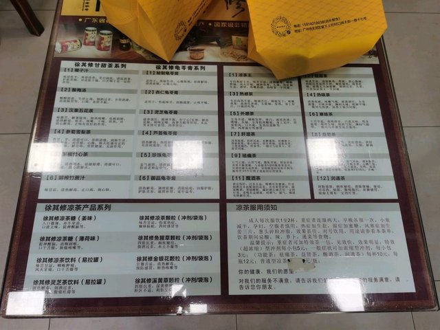 徐其修涼茶 (上社口崗大街) (廣州) 網址: https://s.openrice.com/KtbS0m0AGjy00 地址: 廣州天河區棠下上社口崗大街17-1號109號鋪 電話: +86 15914219938