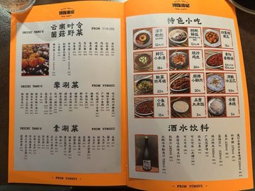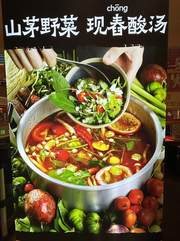 鴛鴦鍋底(現舂酸湯鍋底+豆米豬肉圓鍋底) / 現舂水果大雜燴 / 【招牌】現舂山野酸湯鍋底(又酸又辣) / 潮發吊龍 / 洋芋粑粑 / 民族香料拌鮮走地雞
