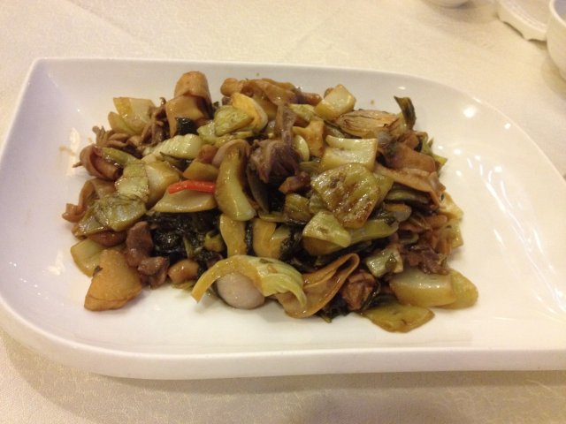 因为御口福在家附近,所以我们偶尔都会去御口福吃吃饭。这里的环境还不错,出品还算可以。我们点了这里的招牌咕噜肉,肾球酸菜炒鹅肠还有一份青菜。咕噜肉原来是用五花肉做的,我开始还以为是用排骨做的呢,但吃起来口感不错,肥瘦相宜。肾球酸菜鹅肠也很好吃,尤其是酸菜下饭真的很棒。但不知道是不是清明的原因,这里的菜等了很久才上,服务也有点跟不上,希望以后可以好一点。查看更多
