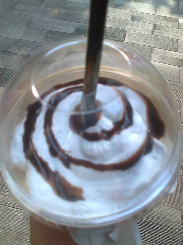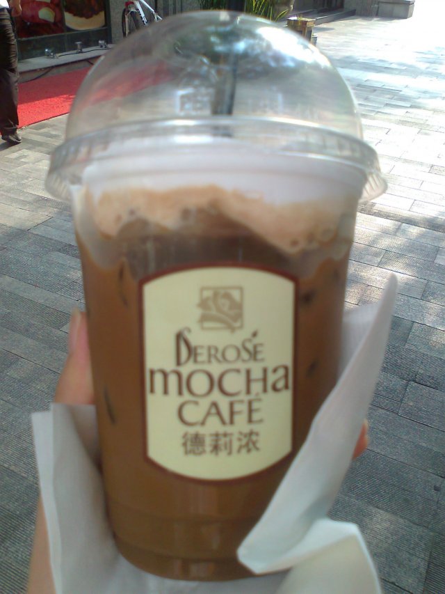 在附近闲逛等人的时候经过了它家的店面,装修什么的刚好是我喜欢的风格,尤其门口还写着招牌摩卡、卡布奇诺半价优惠,这就够我进去了。里面没什么人,红色的咖啡色大片大片地布满整家店,给人厚重舒服的感觉,如果我有带上本本,过来这里边喝边等人也是很不错的……可惜我一没有本本,二是手机没多少电,支持不了我上网太久,再三这里的半价优惠只支持外卖,不提供堂食。听服务员的意见要了杯招牌冰摩卡,上面有着一层厚厚的奶油,看上去就很可口了。先试了一下上面的奶油,很甜很滑,但是不是腻味的那种,里面冰似乎很多,喝了一下,马上囧掉了,好甜好浓厚的可可和咖啡味道,舌尖可以明显地感受到丰富的颗粒,似乎咖啡神马的都还没怎么融化。我只能在烈日下期待里面的冰化掉,好让它变淡了。后来证明它的比例神马还是很合适的,当冰化掉后,整杯摩卡变得滑溜起来,香甜可口,味道恰到好处,不会变得淡淡的,而温度还保持在微凉的状态,很不错。当然下次不要让人等太久就更好了………查看更多