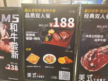 安格斯板腱 / 牛角包 / 一塊真正的原切戰斧牛排 / 谷飼板腱牛排 / 爆漿牛角包 / 頂級和牛小西冷