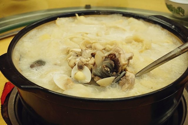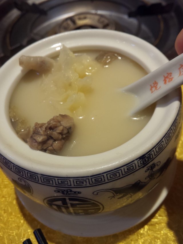 据闻这里的佛跳墙很好吃,地点不算难找,一般的大排档。佛跳墙有干瑶柱、白贝、鲍鱼仔、海参、花胶、银耳、鸡脚、土鸡等等,汤是奶白色的,很鲜甜,感觉没有味精,一大锅两个人吃不完。查看更多