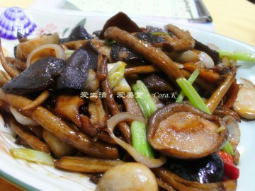 据说碧映鸡是成惠食府每桌必点之招牌菜,好鸡之人又怎能不试?因缘际会之下便觅鸡而去。成惠的晚市很旺场,热情地部长带着我们找到了一张一千零一张双人桌,在嘈杂的A厅中,未曾开吃已然被鼎沸的话语声充斥了每一个听觉细胞——听饱了。服务人员的反应很周到迅速,问茶、斟茶、下单、上菜一系列程序下来非常流畅,基本不用等。盛在一只只木桶内的碧映鸡皮光肉滑,宛若小家碧玉横卧温泉浅汤之中,散发着清香阵阵,分外诱人,咬一口,更是清香四溢,肉质细嫩不柴,鸡皮滑而不腻,配的鸡汁金黄油亮,蘸一蘸更增咸香滋味,性价比如此高,无怪乎能受追捧。吃到一半再来一碗香软的米饭,淋上些许木桶内的鸡汤拌匀,嗯,又一碗香浓的鸡油饭。春天是吃菌的季节,正是菌类肥美的时候,什菌炒猪颈肉同时满足了想多试一个招牌菜的愿望,可惜此菜不够清爽,过多地使用了糖,味稍重而偏甜,没能突出菌类的新鲜,猪颈肉则显得过干了些,没有想像中那般爽脆,味道尚可。每次在外吃饭听到豆苗总会想起,春末夏初田间那翠翠嫩嫩的豌豆苗尖和那或粉紫或粉白的豌豆花,爱死那种柔嫩丰盈的触感了,未及细问便点了一份鸡汁浸豆苗,然而理想很丰满,现实却很骨感,卖相还不错的豆苗却非我想之物,这种豆苗太多老硬,很容易噎喉咙,好在放的味精不多,很清淡,细细地挑着吃也算解腻之物。