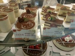 推荐提拉米苏,呢度有各种各样的提拉米苏,其实味道大部分都系差唔多,只不过系造型唔一样, 有的系hello kitty,有的就比较普通,有的就加入水果,其实都系以奶油为主的。所以我就中意 呢款hellokitty提拉米苏,只不过系表面有个嘜头啦,表面的系可可粉,吃起来似乎系无咁漏, 奶油都几滑几细腻,层次感吧,就系觉得奶油个层会比较厚,其他的比较薄,幸好唔系太甜,否 则会觉得漏的。