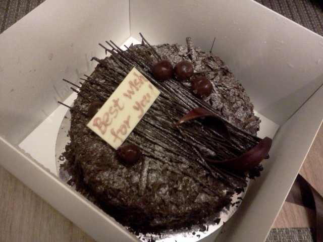 圣诞节前夕,几个女人系“鸣”聚会,刚好撞正是阿某日本偶像明星的生日,有一奇葩朋友每年今日就会买个蛋糕,接着罗住两张人头照,放系个蛋糕点两只蜡烛,好像死人照甘,再来全体唱生日歌,发上个微博...真是晕啊,连续两年,我连果位仁兄叫咩未搞清楚啊!上一年是串屋的蛋糕,今年是里间的蛋糕,要黑森林蛋糕....几香朱古力味道,不过有D冻..中间的雪糕层太厚了,放成半个钟头未溶,天气又冻,吃到我地~~其实味道唔错,比我之前买的绿茶蛋糕要好好多啊,起码比较醇香,没太多化学剂的味道....里到的黑森林可以再订!里到的品种的种类还好,见到有马卡龙,好像是13-15/个啊,望眼就继续看其他...广州的马卡龙我可唔想再领教!好耐之前就系到买个的,当时呆5...6分钟仲是唔知道想买咩也,直接问个店员咩最好卖..他中间四款比我看,抹茶或咖啡瑞士卷..还有两款唔记得名了....买了抹茶瑞士卷,25个大洋,用盒装的, 包装够小资,比钱期间...有三个人同我一样都是买抹茶瑞士卷;真是甘好吃?!返去吃过先知道!表面好厚的抹茶粉,第一淡吃落口稍苦...跟住好多忌溓,第二淡比较腻..虽然中间夹住好多红豆,但是吃落口感觉不了清新....而属于抹茶的果份爽口同清淡跟加去无踪来无影...第三淡是纯的抹茶蛋糕,香精太多..料太假...吃完要稳水饮的....也不过如此!开系写字楼中...样子讨好...价钱讨好...再来带点虚荣....跟连锁咖啡店一样.....只能很偶尔很偶尔的帮衬!不过黑森林认真不错咯~~~~查看更多