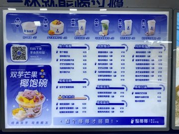 原味椰子凍 / 椰奶滿滿杯 / 整只椰子冰 / 芒果椰子凍 / 紫薯波波椰奶 / 芋泥波波椰奶