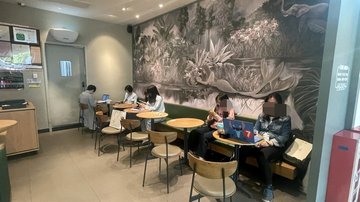 置地廣場春廣場負一層星巴克,面積超小所以只有在單餐台對面的中庭一側擺放了一排桌椅,都是開放式的因此很多不點餐的人也來坐這裡玩手機休息。店面區域右側只有少少座位,左側有三個細小的沙發桌。動作大點就會碰到鄰桌的那種。不過服務態度很好,上錯餐就免費送給我們,週五有廣發銀行活動買一送一