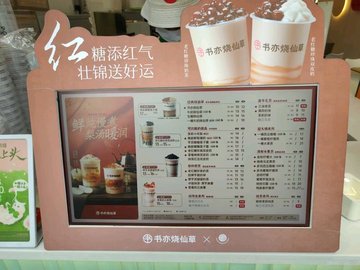 書亦燒仙草 / 草莓啵啵酸奶 / 葡萄芋圓凍凍 / 小芋圓燒仙草 / 黑糖小芋圓奶茶 / 楊枝甘露燒仙草