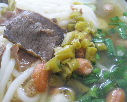 桂林米粉好正的,我好中意吃,以下就是了,有酸豆角啦,花生啦,猪肉条,冬菇片啦在上面配菜多样,米粉又爽口,汤又好喝,虽然对汤水不知道是不是味精汤,打包的时候是汤和米粉分开的,汤看上去就像开水一样清,但是米粉底部有酱油,可能是汤水到进入后酱油融化了,所以好好味道查看更多