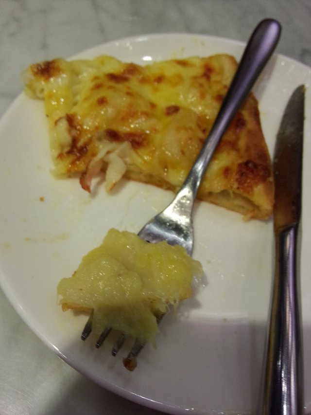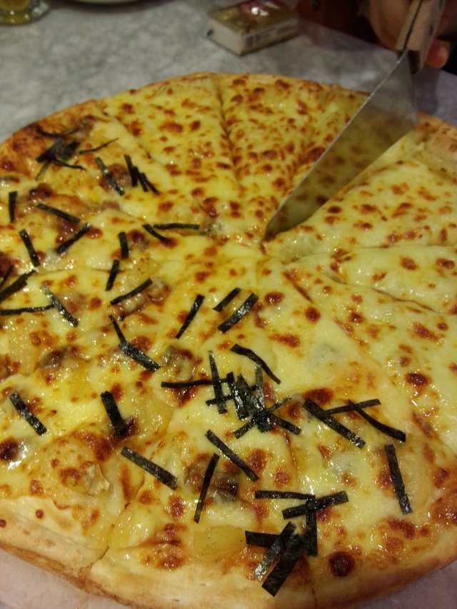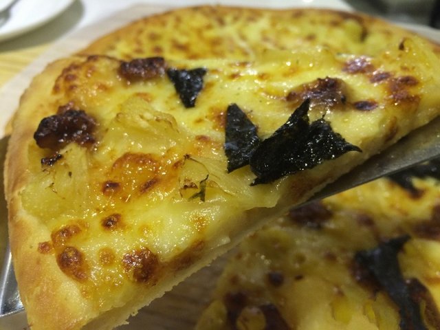 看中这里的名气,特意来试试传闻中的金枕榴莲披萨。左边有紫菜的是金枪鱼,右边的是榴莲披萨,迫不及待要试试榴莲,一口咬下去,发现上层的芝士非常正,烟韧,味浓,完全可以拉成丝,口感丰富,再来就是到了第2层的榴莲,果然名不虚传,满口都是软绵绵的榴莲肉,非常香甜,份量也多。最后一层薄薄的底皮,很脆,不像必胜客那样厚底,很好吃。价钱再贵也是值得的。查看更多