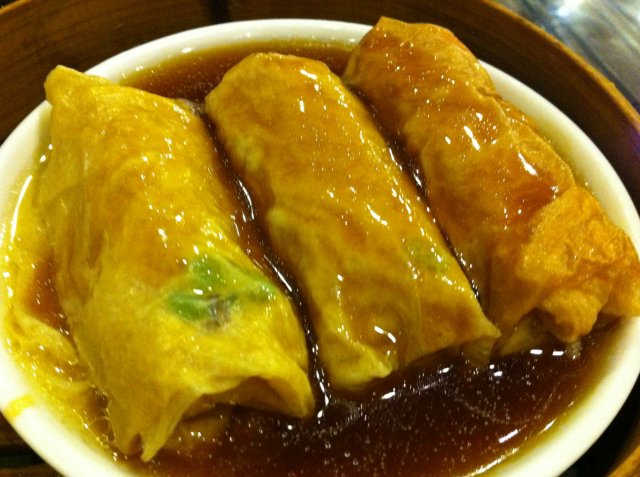很喜欢这里的冰镇榴莲,外表看起来像白雪梅娘~~吃起来浓浓的榴莲味~~软软的~~盐水菜心:菜心很嫩~可以试下~~鸡爪:不酸,还可以肠粉:觉得不是很入味,有些没有酱油的就没什么味道腐皮:腐皮里面包裹着萝卜丝,肉丝~~泡在酱汁里面~~还不错干蒸:朋友喜欢,本人可能对这个一般般吧,就觉得和普通的干蒸没什么区别这里的茶还不错,就是价格有点小贵,两个小女人,就吃了一百多查看更多