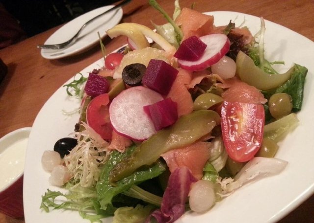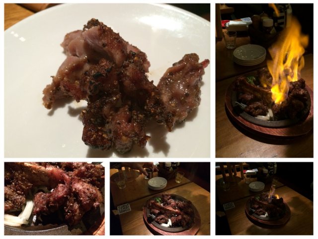 已经是第二次来品尝洛奇先生了,之前是在太古仓的分店,吃完他的招牌牛扒后觉得回味无穷。这次刚好有朋友从国外来广州,于是就带她来品尝一下这里的美食。 这次我们选择了洛奇先生的琶堤分店,这里的交通不是太方便,没有地铁直达,能到达的公交车也不多,晚上基本上都需要打的出去。附近有啤酒博物馆,还有很多特色的餐馆,对着珠江两岸的江景,晚上越夜越美丽。这里的餐厅装修与太古仓的分店一样,都是采用西部牛仔风情的装修风格,除了室内,还有室外的露天环境。餐桌都是采用木制家私,这里同样有桌球和飞镖供给客人娱乐,周末晚上还有现场的驻唱。刚好我们去的是周一,这天没有现场驻唱,比较遗憾,只有现场放了比较轻松的音乐。 我们一行7人,要了一张大台,首先每人先来了一杯饮品,由于我是不喜欢喝酒的,就叫了一杯杂果宾治,用果汁调配而成的饮品,酸酸甜甜,味道有点像鸡尾酒,但是没有酒精成分。 杂锦香肠,有芝士肠、牛肉肠和鸡肉肠,芝士肠的味道较为好吃,浓浓的芝士味,另外的其他两种肠味道就不是太突出。 烤牛仔肉,牛仔肉都烤好切成一小块,比较容易入口,但有少少老,吃上去比较韧,但牛味还挺浓的。 看看这红红的火光,这是这里的招牌限量菜——西部牛仔烤全鸡,上来的时候会现场点火,酒精挥发完火也跟着熄灭了。吸引了很多人的目光和相机的拍照。 鸡是完只上的,吃的时候需要自己动手分,可以选择手撕鸡,也可以用刀叉把它分开...经过火烧后还能保持鸡肉的鲜嫩这是挺好的,但味道的话感觉偏淡了少少,不太入味。 火焰牛仔骨,同西部牛仔烤全鸡都是一样,上来有焰火表演,牛仔骨比较大块,不太容易分,切不了多少肉,另外也是感觉有少少老了,味道还可以。其实感觉这两个菜都是表演大于味道,如果想吃好吃的还是点上一个几百元的牛扒比较好吃。 肉酱意粉,意粉的软硬程度刚好,而且吸收了酱汁的味道,口感不错。 洛奇炒饭,里面的材料都比较丰富有鱿鱼,虾仁等等,饭粒炒很甘香,干爽,不会很油腻。 这个炒饭有少少的微辣,更为野味,喜欢吃辣的同学估计会喜欢。 最后还送了一个水果拼盘,很满足的一餐。…查看更多