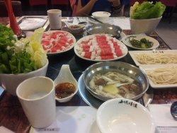 海鲜拼盆有很多海鲜(生蚝,象拔,青口,带子,鲷鱼,大虾,尤鱼等)一次性满足,酱料那个多啊,,自由配搭,还有炒饭,青瓜,雪糕,糕点小吃,寿司等,免费吃,手工面,,个人觉得很好吃,有点似拉面的感觉,不过要煮耐一点,,才有嚼劲,可惜它家的店都有点远,,这家对比太阳店大很多,环境也好一点,各方面都好一点,小吃都多一点,,不知是不是总店呢?在汤方面料多一点浓一点,肥牛和羊肉质量都不错,数量不多,不会像其它涮锅店,一看肉色就知的,试过很多涮涮锅这家汤底最好不知是不是好运,,那个海鲜汤很多料啊,,鲜味不断,干圆柱,干虾,吃下吃下就会吃出一些来的。。我最爱的干圆柱,涮锅最好的选择。:)汤底我自已最后喝了很多啊,,,呵,,,很满足的一餐啊我还会再去的查看更多