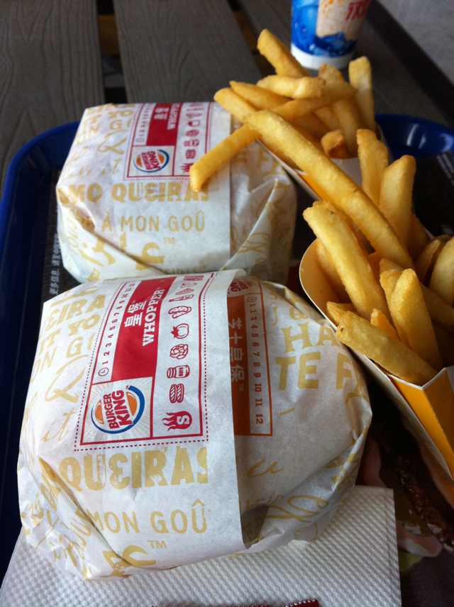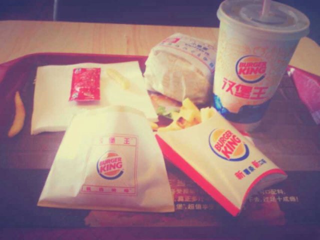 哈哈。汉堡王听说他们的价格比起周围的汉堡比较贵。可是他们的分量是十足噶。确实的哦。他们这里的汉堡的尺寸真的比其他的大点噶,而且里面的分量也是很多噶,不过就主要他们是独孤一肉噶,没有鸡肉和猪肉,只有牛肉噶。哈哈。所有他们的包都以煎牛肉烤牛肉为准,有胡椒也有更辣的。这样才可以没有那个牛肉的骚味噶。 此起来要新鲜出炉才好吃,由于热吃的话。牛肉才能发挥它自己的肉感出来噶,如果冷了。就会很硬,咬不开的感觉噶。
