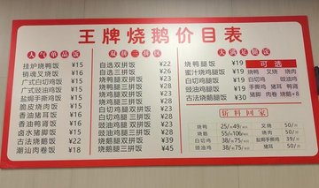 王牌燒鵝 (蘿崗萬達廣場) (廣州) 網址: https://s.openrice.com/KtbS0m0cLMI00 地址: 廣州黃埔區蘿崗科豐路89號萬達廣場金街2F層D270號鋪 電話: +86 13128219692