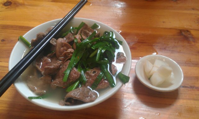 朋友的朋友开的店,牛腩和猪场都很好吃,本来是不吃猪肠的,因为怕它有一股尿味,但这里的猪肠确实处理的好,不但无怪味,味道还很香,猪肠内也很干净,不会有很多猪油似的,淋得来有咬口,好吃。但这里的面真的不行,是外面买来的碱水面饼,宽身的,质量很差,建议改进。查看更多