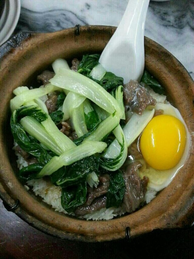 有日经过哩边,同个F唔知去食咩好,见到哩间有煲仔饭食,就系哩解决啦。坐系店铺对面嘅高处,环境好一般啊。就好似d街边档甘咯。点左个窝蛋牛肉饭,上到黎只鸡蛋岩打落去,要捞匀d饭先食,鸡蛋就岩岩好可以食,好滑。牛肉都几多下啦,几嫩滑啦。不过饭焦就比较少,我想食啊。查看更多