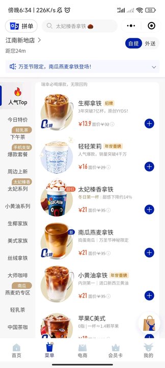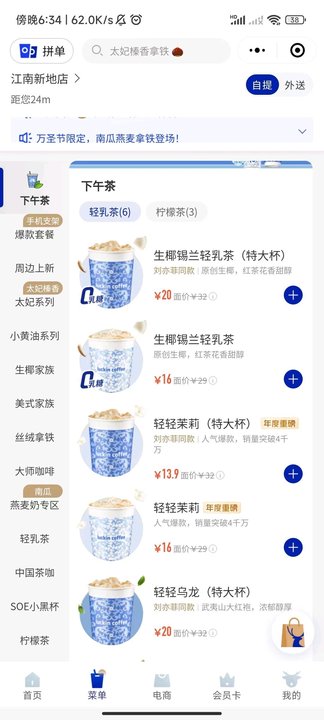 冰吸生椰拿鐵 / 厚乳拿鐵 / 茉莉花香拿鐵 / 摸魚生椰拿鐵 / 生椰拿鐵 / 隕石拿鐵