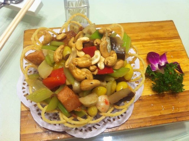一看这名字就知道是一间主打素食菜的专门店。店面不大,不过就餐环境都算几优雅,很适合聊天聚会。装修都算几简朴,几盏顶灯加上实木地板,感觉都颇为简单的设计。不过让人感到不足的是这里的上菜速度有些慢,平均得等10分钟才上一道菜。感觉不是很好。不过他们出品的菜式都算几正宗,味道都还算不错。尤其是他们的鲜百合炒腰果丁,很大碟,腰果丁用油炸得金黄剔透,没有看到炸糊的情况。分量十足,铺满了整个碟头,吃起来松脆可口,不会很腻。鲜百合在灯光的照射下闪闪发光,看起来都几新鲜。吃起来味道很鲜甜,很爽口,仔细品味的话有一股淡淡的清香,口感很不错。而且价钱方面也不算很贵,20块钱一份,都算几实惠的。查看更多