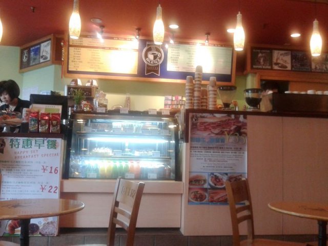 团购了28的商务套餐,选择了泡沫咖啡,烟鸡肉卷。个咖啡咖啡味很浓,略显苦左D要加左三包糖,呵呵。烟鸡肉卷一般般,有点象肯德基的墨西哥鸡肉卷,不过要干口一点,总的来说性价比不太值得,不过那里的环境都几舒服,还有可以wifi上网,有空可以坐在那里一下午。查看更多