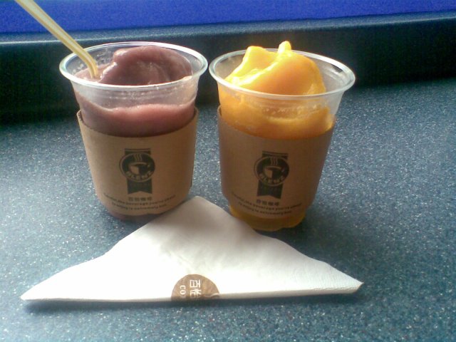 之前这家在中信的百怡推出了团购,10元团购价,可享20多元的咖啡或水果冰琪罗,于是我和朋友都购买了。在10月31号和几个朋友去逛天河那边,于是去用团购的4份咖啡的团购券。我们4个人,分别是选了:美式冰咖啡、cappuccino和两个水果冰琪罗。水果冰琪罗有好几种味道的,我们选的是芒果味的和蓝莓味的。我们互相试了试每一杯,觉得那个cappuccino很苦啊!下了两包糖还是很苦呢。呃呃,难道是我太久没喝咖啡了吗?以前喝过不少地方的cappuccino也不至于这么苦的哟。美式冰咖啡倒不是很苦,不知道是不是冰冷的原因。两种水果冰琪罗倒是挺好吃的,里面的冰沙细细的、绵绵的。朋友们都喜欢芒果味的,而我却更喜欢那杯蓝莓味的呢。其实这家百怡几年前也来过一次,只是太久之前了,没啥记录,当时是晚上去小坐了一下,觉得环境挺不错的。现在觉得它好像环境一般般,也许是每次去到时的氛围不同吧。查看更多