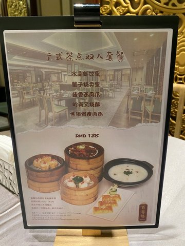 百粤楼是皇冠假日酒店下面的中餐厅,主要以粤式点心为主,环境不错,在酒店的餐厅来说是很旺的。餐桌有点小,大厅也算是比较小的,在走廊过道也放了不少2座的餐桌。但服务员还是可以的,人手充足,而且服务尚算OK。上菜速度在人多的时候要等一下下。菜品的分量是正常点心水平,出品的性价比相对同等级的酒楼要好一点,但也要根据所点的食物而定。总体是满意的。这边的点心选择也算多,有的名字起得比较特别一点,还有西式的点心甜品面包可以选择,这个倒是挺少见的。团购:85折代金券(每桌限用3张)服务费:15%人均:66RMB【剁椒豉味蒸排骨】23RMB。推荐!第一次吃到这么多排骨的蒸排骨!!!而且还基本都是正中的部分~ 他家做的没有放很多的豆豉酱,相对清新一点,肉嫩,但颜色上看上去有点浅,可能是酱料的问题。不错~【蚝汁花生扣凤爪】25RMB。分量挺多的,应该有5-6只鸡爪。大小适中,煮的火候觉得是刚好,不过过于软绵一吃就褪骨,也不是没煮软的程度。只是酱汁上稍微偏淡了一点~【荷香鲍瑶糯米鸡】20RMB。好浓的白酒味...为什么糯米鸡里面要放这儿多的酒...其他的都被忽略掉了。【澳门猪仔包】18RMB。就是蒸的奶皇包,样子做成小猪,适合没见过的或哄小孩的。【爆浆公主叉烧包】18RMB。叉烧包也能扯到公主头上也简直了...趁热吃比较好,里面的肉馅料不多,但酱汁倒是不少,的确可以做到爆浆的程度,如果肉末多一点可以增加口感。还不错~【冬季蜂巢糕】13RMB。第一次看到给蜂巢糕起了一个季节的名字...正常蜂巢糕水平~ 不过那个黑糖的味道还是比较突出的。【姜汁千层糕】18RMB。据说这个做得很辣~【九制陈皮牛肉球】22RMB。牛肉球还不错,是属于偏软但有口感的类型,下面搭配的应该是腐竹,但已经是软烂状态的了,夹起来也有难度,口感变得有点像豆腐花...【健康斑兰马蹄糕】22RMB。这个名字真的觉得是为了凑字数的吧... 卖相是绿色的也真的是贴题。不过味道和口感都一般~【椰汁桂花糕】16RMB。这个事冻的,分了三层,透明的那层夹着桂花糕,中间一层应该是椰浆做的。【避风塘萝卜糕】22RMB。他家做的这个萝卜糕不太行,面粉少了,口感稀弱,味道也做得不到位。【芝士椰皇煎堆仔】20RMB。这个等的时间有点长,煎堆仔应该算是广州这边比较传统的一个小吃,外面是炸脆裹上白芝麻的脆皮,里面一般是面粉团。他家做了一个创新,放了芝士椰酱~ 没吃~ 评价不了。【炭烧叉烧梅菜肠】20RMB。又算是一个比较新奇的搭配,叉烧竟然用梅菜来搭配,对于喜欢梅菜的人来说可能是一个惊喜,对于不喜欢梅菜的我来说还是觉得梅菜的酸咸是很难搭配起来的味道,尝试一下也未尝不可。【牛腩口者肠粉】23RMB。猪肠粉用的是好的那种,比较晶莹剔透,但还是觉得做这个经典的牛腩粉就一定要用最便宜看上去没那么透明的猪肠粉做的才好吃~ 比较透明的那款口感偏黏稠,也相对难吸收牛腩汁,这个是重点~ 分量还是比较多的。【柴鱼花生猪骨粥】22RMB。还是第一次看到星级酒店的餐厅用瓦煲来做盛器上桌的...感觉有点不搭嘎... 分量还可以,柴鱼花生猪骨也算是一个很融洽的搭配。【白灼生菜】25RMB。分量挺足的,新鲜。【提拉米苏】25RMB。西式的甜品,卖相比较正常,但据说做得还不错~【星洲炒米粉】48RMB。分量比较多,但觉得这个炒得一般般,木有新加坡的风味出来。