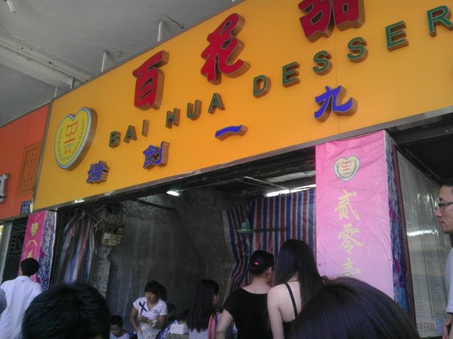 文明路上的百花甜品始创于1986年,是一家老字号的甜品店。环境比较简陋,几十年如一日。生意总是火爆非常,经常见到店外排着长长的队等买糖水的热闹情景。 这里的糖水品种多样,红豆沙,绿豆沙,芝麻糊,香芋西米,木瓜西米露,番薯糖水,奶糊,龟苓膏,或红绿糖水双沟什么的。任君搭配。 冻的比热的贵一元。外卖的逢十送一。 今年来物价急剧上涨,甜品的价格也随之上涨。 芝麻糊做得很幼滑、细腻; 红豆沙,绿豆沙、香芋西米等味道都比较偏甜。 用的是一次性的碗和调羹。一来不够环保,二来不利于健康。 装修期间正常营业。 希望装修过后的百花甜品店,不断地改进。让人坐得更舒适,吃得更放心,吃得更滋味。查看更多