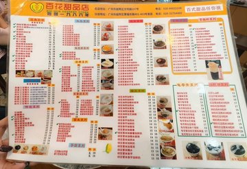 百花甜品店 (惠福東路) (廣州) 網址: https://s.openrice.com/KtbS0m0Ix2J00 地址: 廣州越秀區海珠廣場惠福東路401號鋪 電話: +86 13802982231