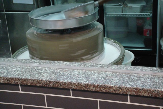 某天非常无聊地路经此地,看到石磨老爹的名字几得意,本着食野写食评的精神就去吃一次。装修环境不错,食野的地方我最注重的是干净卫生,这里算不错了。看到厨房有石磨机,就想试吓它家的肠粉啰。点了一份牛肉肠,肠粉果真又滑又薄,牛肉他几嫩滑的,与银记、华辉的同一档次,不过豉油就差了N个档次了,比较寡,失分唔少啵。看到隔离台上了一个木桶仔的东西,好得意,有豆腐花、芒果粒之类的,可惜得我一个人,怕吃不完,还是留番下次来吃吧。查看更多