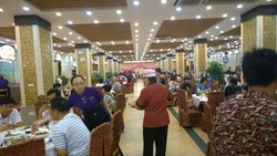 老表准备年尾结婚,现在头痛紧订酒席的事,有人介绍说秀林庄不错,新装修后比较大方得体,价格性格比较高的酒楼,刚好家里要办个生日寿宴,就当来试下菜吧!来这儿摆酒席的人也比较多,这天来这摆寿宴的就有几家人了。门面用汽球组成的心形图案,好有结婚的Fell!大厅都几大,摆100围也不成问题,布置得不错,睇落都几有档次的。环境,卫生都比较满意了,接下来就要睇下菜式及味道如何了。第一道上来的是:秀林清香鸡此店的招牌菜,鸡先用腌料腌过,然后再放入木桶里面蒸煮,鸡的质地不错,很有鸡的鲜味,我们也是连这鸡的汤汁也吃光光嘀!第二道:烧鹅这个就一般咯,皮不脆,肉不嫩,有待改善。第三道:好味骨这个骨做得不错的,好入味,肉还是滑滑的,不会柴,好吃!第四道:小炒皇用了当季的豆角切小段来炒,花生铺面很香,很好吃!第五道:酸菜焖花腩花腩肥瘦分明,食落无油腻的感觉,配合爽口的酸菜,咸酸味,好醒胃。第六道:羊腩煲羊腩焖得比较淋,但觉得五香八角的味过重,广州人都系中意淡口味的多。第七道:白果支竹猪肚煲这个比较清淡,加入了胡椒粉,好香,汤我们也喝埋。第八道:煎藕夹两块藕片中间夹住点猪肉馅,外面爽口,内面肉还很滑,有点小清新的感觉,很不错!第九道:清蒸多宝鱼食材够新鲜,鱼蒸的火候掌握很到位,鱼肉很滑,鲜味!第十道:清水菜心可能系现在的菜心还不是时候吧,不是很清甜,但还是很新鲜的。第十一道:长寿面捞面的形式做的,放了点蚝油调味,不错!第十二道:花生焖猪尾花生同猪尾都好够火候了,好淋,好入味,但稍觉有点肥腻。这次的菜式点的都是些例排的菜,经理话,如果是摆酒席的菜会比这些大碟些,到时就会大体好多了。这家店很会搞气氛,每个来摆寿宴的洒席都会送个生日蛋糕,还帮搞个生日切蛋糕Paty,好有气氛!最后还送了寿星公席的寿包,和每席水果盘,及点心。平时一般人均消费40元左右,摆酒席会稍贵些少。服务态度很好!很满意!…查看更多
