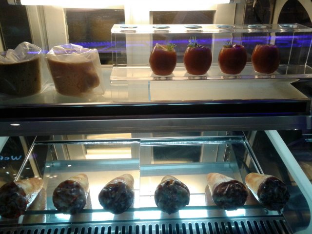就算团购,也不值得去尝试。手卷披萨的外皮又硬又韧,看店员的操作只是放进微波炉简单叮一下,半温不热的就端上来了。试了所谓推荐的吞拿鱼,馅料不仅没特色而且味道乏善可陈,也就是一般超市卖的吞拿鱼沙律三明治之类的熟食里面那个吞拿鱼酱的水准。另外还有那个“可以吃的咖啡杯”,咖啡就是普通的速溶咖啡,咖啡杯是用曲奇做的,但是糖精味太重,杯内壁的白巧克力涂层又太甜,更加显得咖啡的劣质。环境也不好,本来店面就狭窄,垃圾桶还放在很靠近用餐区的地方。…查看更多