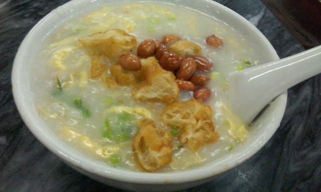 穗银拉肠到目前为止,在广州就只有那么一家,这也是上次刚好经过就顺便进去吃的,要是专门过来的话,那肯定是不可能的。中午时候很多人啊,连门口的摆了好几张凳子,可是里面桌子还是坐满了人。要了一份猪肝粥,这粥的味道不错,挺绵的口感,猪肝比较新鲜,所以粥的味道也很鲜甜的。咸煎饼,这个很香脆的,比较新鲜,嚼起来有芝麻的香。查看更多
