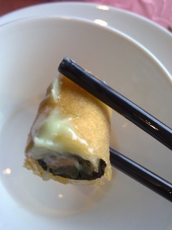 呢间空中一号一向都系消费偏高,所以好少嚟饮茶。第一次过嚟,觉得帮衬嘅客人都唔少,等电梯上楼都要排队。餐厅嘅装修布置都几高档,环境亦都比较舒服,但有少少嘈杂。点咗份三文鱼春卷,卖相同平时嘅春卷差唔多,但里面嘅馅料换成三文鱼,而且系点芥末酱食嘅,口感相当特别,外脆内嫩,值得尝试。查看更多