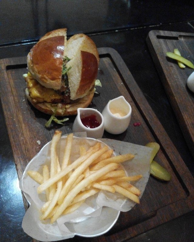 窝居悠闲西餐厅的铺面不大,不过感觉做的是比较用心思的,要明显高于西式快餐的level了,价格和绿茵阁差不多。果木烤牛扒汉堡的分量看起来不大,但是吃起来是一个下肚几乎就饱了,46块钱一个,还搭配了薯条的,汉堡里面的牛肉饼真的是原块的牛扒来的,主要就是这个的成本贵了吧,牛扒的外皮有点焦脆的,不过很干身,几乎没有水分了。查看更多