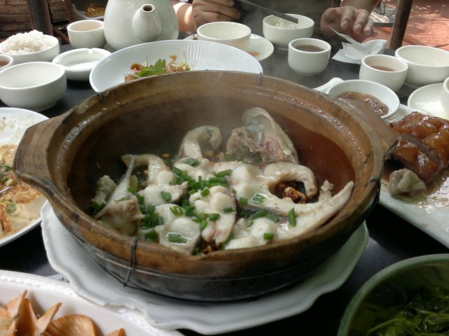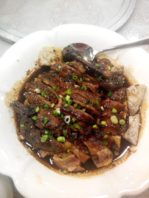 又来这里吃饭,每样菜式都要试一下,这次有两个菜很赞。一个系莲藕汤,莲藕十分软,每块都有藕丝,很粉,莲藕味浓,猪骨头软滑香嫩,骨筒里面髓质很多,很好吃。汤底很赞,味道浓郁,一流的老火靓汤。芋头扣肉,正。芋头焖得很淋,五花肉简直入口即化,焖得味道很好!价钱又便宜,好抵食,不错!!查看更多