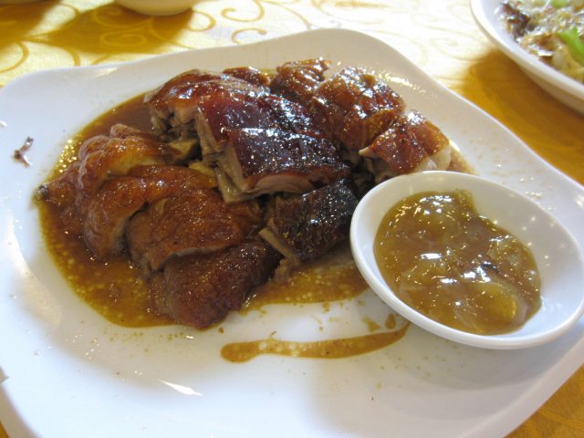 这里交通不是很方便,店面有点旧,里面很大,这里常年都人气都很旺。来这里基本上都点烧鹅,皮脆肉厚,香醇,真的不错。但我比较喜欢糯香骨,用糯米裹着的排骨放在蒸笼上蒸,两者之间的味道协调得非常好,即饭即菜,满特别的。盐水菜心,菜心很嫩。另外还有个点心,叫什么红梅,忘记了,挺多人点的,卖像很漂亮,像个小雪球,不过我觉得太甜了。这里总体还是不错的,值得再来第二次。查看更多