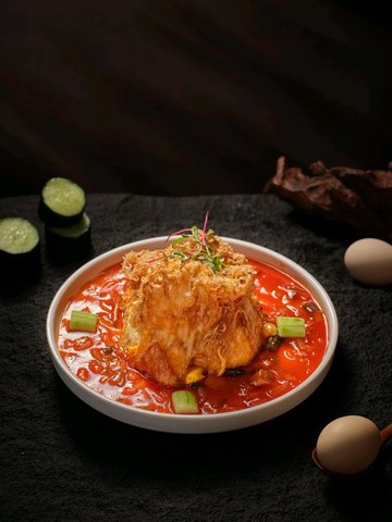 粵集現烤果木燒鵝下莊 / 粵集現烤果木燒鵝 / 海苔黃金一口酥豆腐 / 流沙咸蛋黃焗南瓜 / 鮮花椒冬菜蒸鱸魚 / 冰燒三層肉