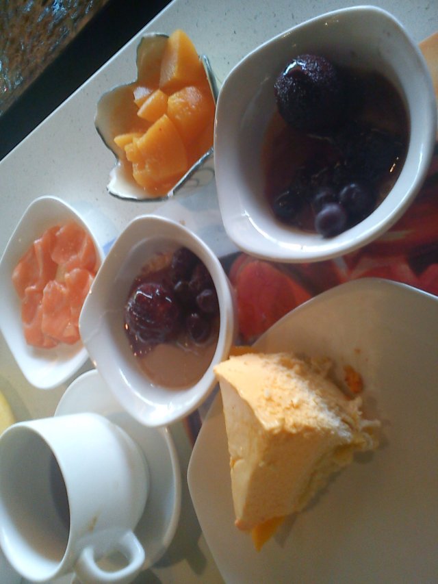 如其叫咖啡厅,不如叫自助餐厅,在假日酒店的4楼,地方都比较大,装修就一般,比较简约,出品的品种都比较多,而且新鲜,价钱是自助餐厅中比较便宜的,性价比比较高。芒果慕斯蛋糕,细细个的,个卖相五算得好靓,小圆形的上面加了提子、奇异果和芒果肉,都是新鲜水果来的,个慕斯蛋糕口感很软滑,有种入口即化的口感,不输给专业的饼店,三文鱼刺峰,无限量供应,切得都几厚,而且纹理清晰,吃起来鱼脂的口感丰富,的确五错。…查看更多