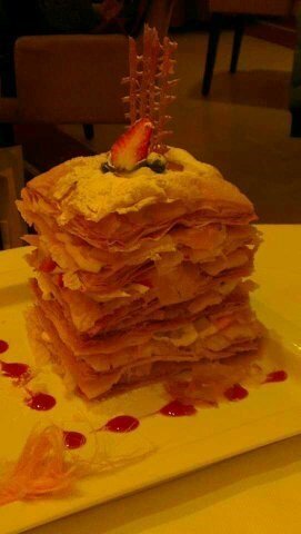 翠园的消费都好高噶,开在太古汇,当然环境也很好的,很多人排队等位的。每次来都要点的一定是拿破仑了,个头很大的,需要和朋友一起分享,自己一个人吃不完的。上面撒了白糖粉,还有一个草莓的。里面满满的新鲜水果跟奶油,很香,当然需要服务员帮忙分开的啦。酥皮真的是超级酥脆啊,一定要上桌即吃,不然味道会没有那么好的。一个88块钱,价格还算可以啦。查看更多