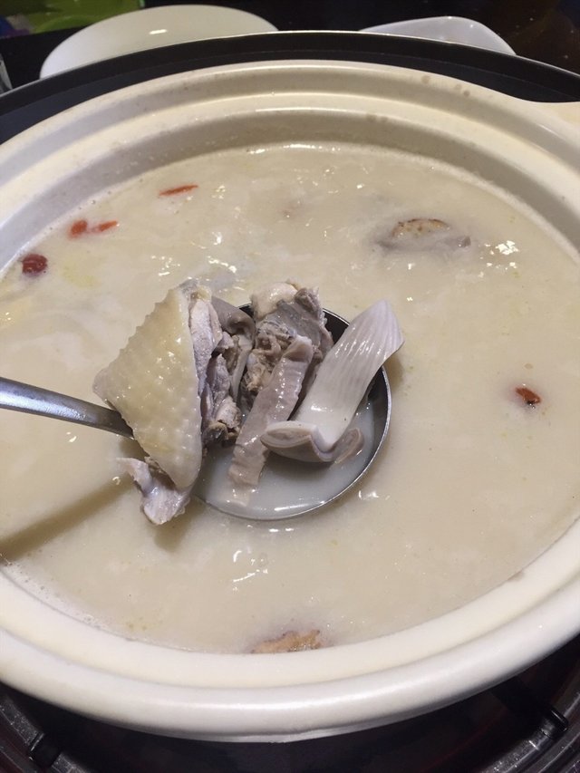聚汇坊猪肚鸡 人在驴途等級42014-01-1938 瀏覽 關注 【花胶皇猪肚鸡煲】 (清远鸡1只,猪肚1份,花胶1份)记得以前吃的猪肚鸡是煮好了端上来的,这个鸡是生的,需要自己煮。也好,感觉不会缺斤少两。刚开始还担心要煮很久才熟,没想到很快就能吃了。【健康养生拼盘】 有菇类,木耳,山药,玉米,胡萝卜,白菜。挺健康的,不过价格嘛,感觉水分太重了。【腊味饭】 丝苗米不错,很香,不过腊味少得可怜。配了一份调料,服务生帮忙倒进去搅拌后,味道更好。服务不错。…查看更多以上食評乃用戶個人意見 , 並不代表OpenRice之觀點。讚好分享聚汇坊猪肚鸡 聚汇坊猪肚鸡 https://s.openrice.com/KtbT0m0wLW900檢舉 張貼 評分4味道4環境4服務4衛生3抵食