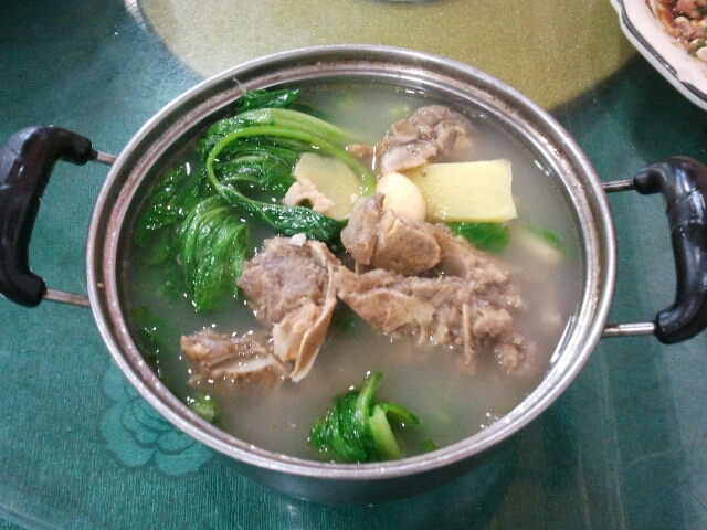 很大一煲猪骨芥菜汤。