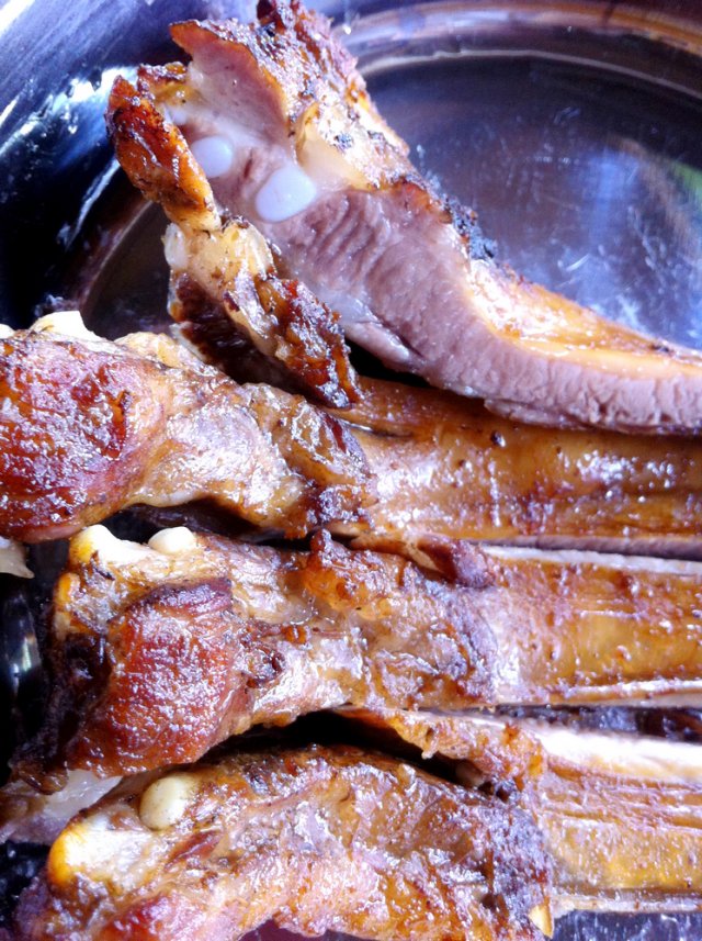 烧排骨够香 jf6559等級32012-06-1217 瀏覽 關注 嚟到肥仔烧排骨山庄,就可以见到餐厅专门有一个厨房,系烧排骨用嘅。厨师一边响厨房里面用明火烧排骨,客人一边可以响外边睇住。我通常都会点2斤烧排骨,因为1斤可能唔够食。厨师将排骨按肋骨条一条一条斩开,睇见卖相咁吸引,已经忍唔住即刻用手抓起就撕嚟食。烧排骨烧嘅火候啱啱好,唔会太老,肉质够嫩滑,表皮甜甜地,肉里面又渗住浓浓嘅烧烤香味,相当香口惹味。…查看更多以上食評乃用戶個人意見 , 並不代表OpenRice之觀點。讚好分享烧排骨够香 肥仔烧排骨山庄 https://s.openrice.com/KtbT0m0aQK200檢舉 張貼 評分4味道3環境3服務3衛生3抵食